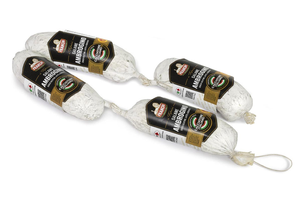 The Salamini Ambrogino Cacciatore PDO are the result of a rigorous selection of Italian pork. They have a typical delicate aroma, sweet flavour and an intense ruby colour.